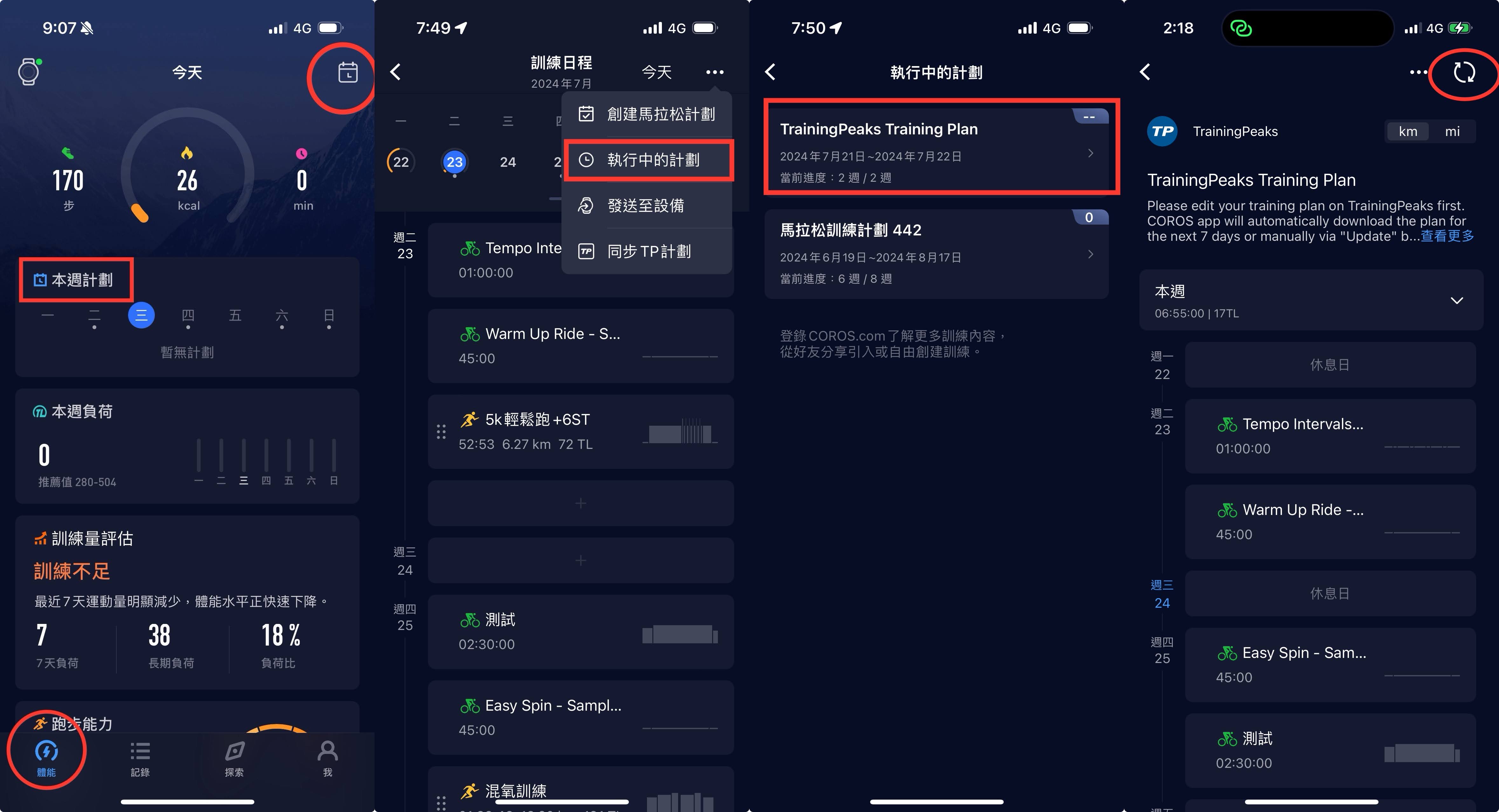 如果你或你的教練對 TrainingPeaks 日曆進行了變更，請手動同步這些變更到你的 COROS APP。操作步驟如下：
