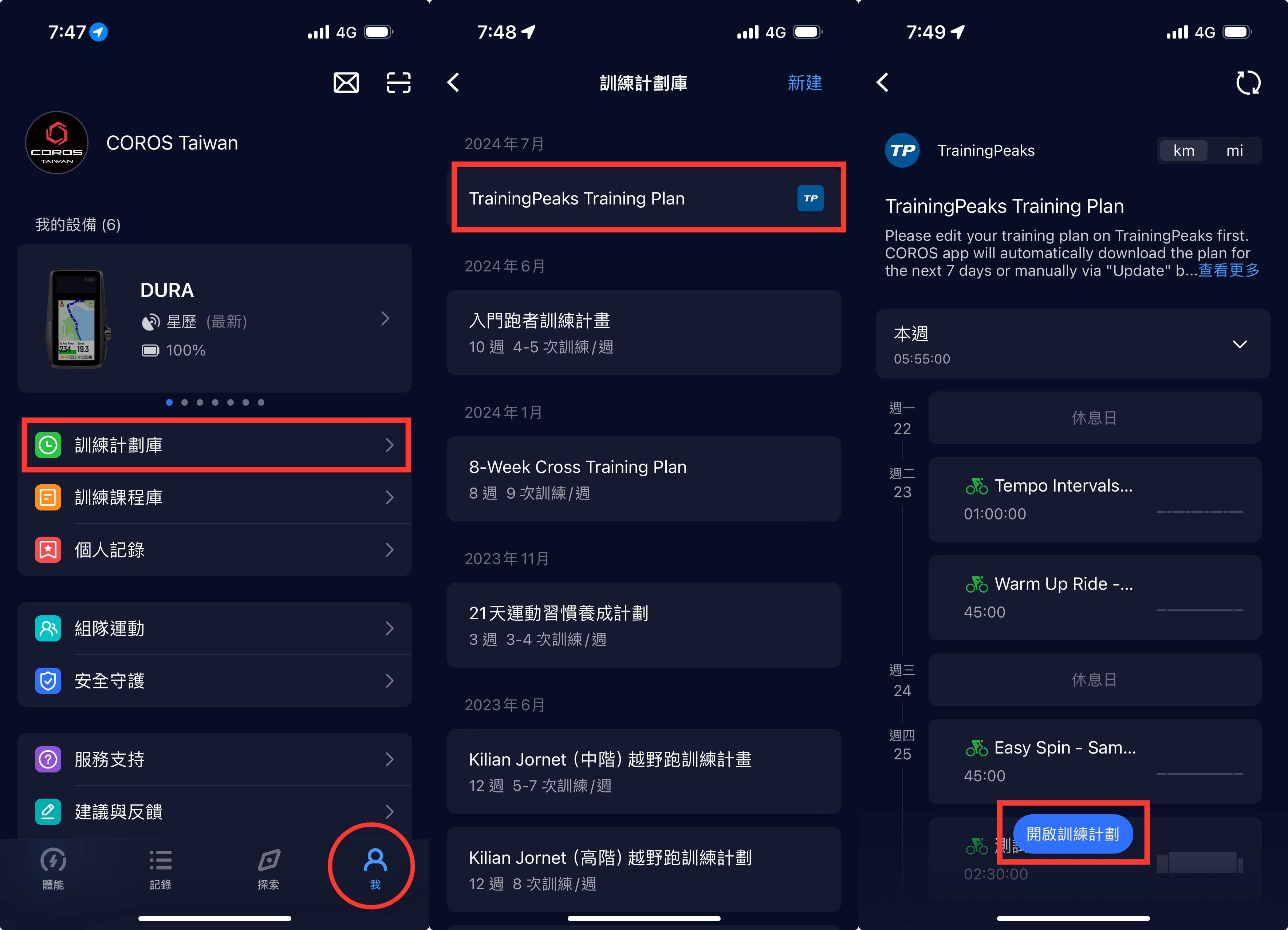 #### 二、增加 TrainingPeaks 訓練計畫到 COROS 行事曆